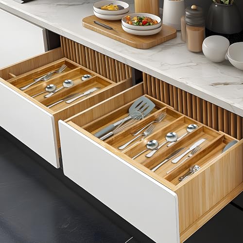 - مادة فاخرة: مصنوعة من خشب الأكاسيا الجميل مع 5 مساحات تخزين واسعة لتخزين منظم لأدوات المائدة وأدوات المطبخ