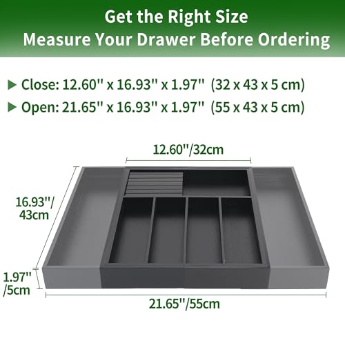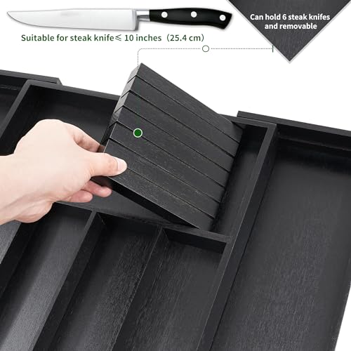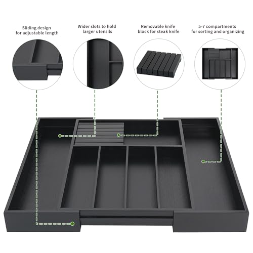 VaeFae - منظم أدراج أدوات المائدة من الخيزران حامل لأدوات قابل للتوسيع كصينية تناول الطعام مع فواصل لتخزين وجزء السكاكين للإزالة فايفاي 33 سم - 55 أسود