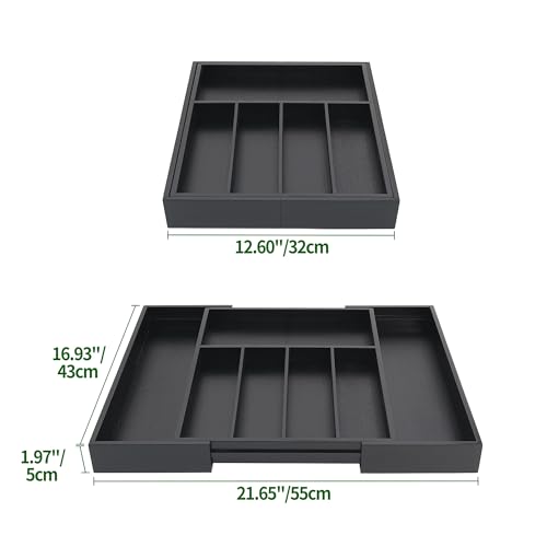 - 【تناسب تمامًا أي مكان】 صينية أدوات المائدة الكبيرة من فاي فاي قابلة للتوسيع من 13 انش إلى 21.6 انش عرضًا و17 انش طولًا و2 انش عمقًا، سهلة التركيب، فقط ضعها داخل الدرج وقم بتوسيعها أو وضعها أعلى المنضدة