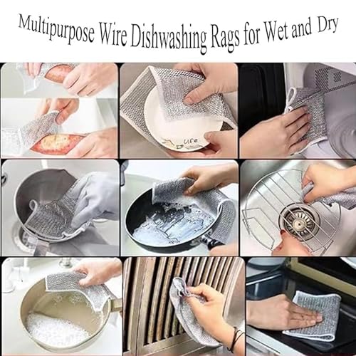 VAIDUE - قماش غسيل الصحون، فوط سلك لغسل الصحون للاستخدام الرطب والجاف، إسفنجة تنظيف من الفولاذ المقاوم للصدأ غير الخادش بتصميم متعدد الاستخدامات للمطبخ من فايدو، عبوة من 5 قطع