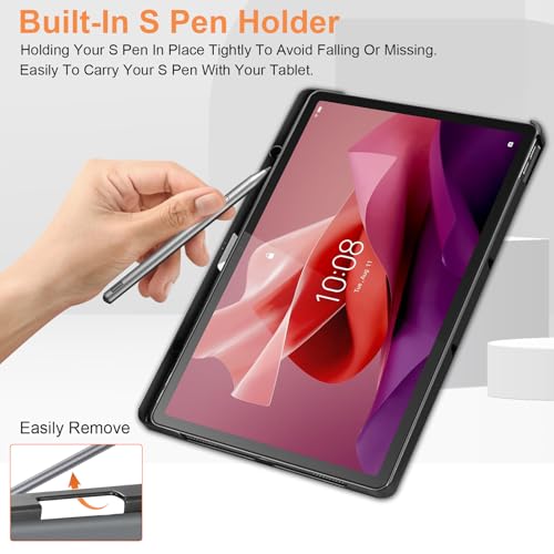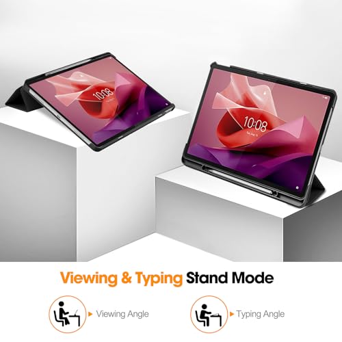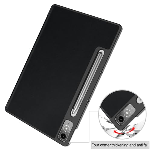 Vakarey - جراب حماية ذكي رفيع من فاكاري لجهاز لينوفو تاب P12 12.7 بوصة مع حامل ووظيفة النوم/الاستيقاظ التلقائي، أسود
