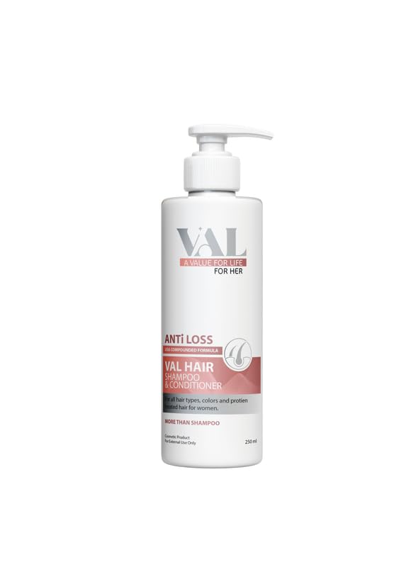 VAL - شامبو وبلسم لمنع تساقط الشعر خالي من المينوكسيديل للنساء لتقوية الشعر وزيادة كثافته والحد من التساقط من فال، 250 مل