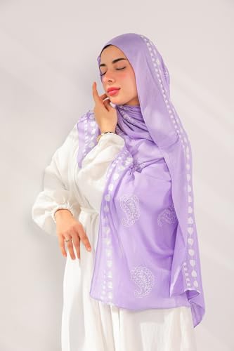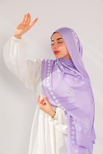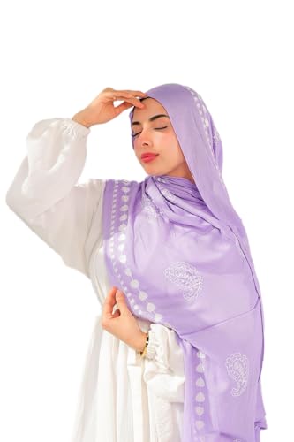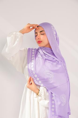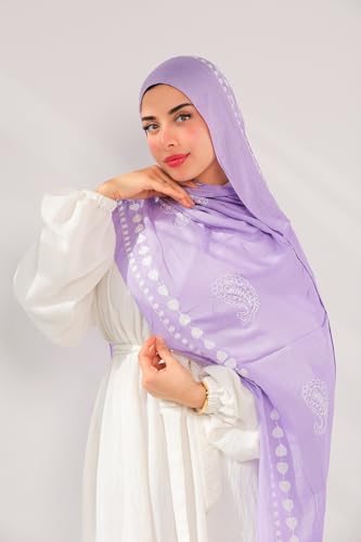 Valantino - سكارف حجاب مودال مطرز بنقشة بلون أزرق وأبيض من مزيج من القطن من فالانتينو