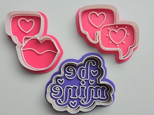 - مجموعة قطاعة بسكويت عيد الحب مع ختم - أشكال قلب وحب للبسكويت والفوندان والطين - 6 قطع من قوالب الخبز البلاستيكية للحرف اليدوية والخبز