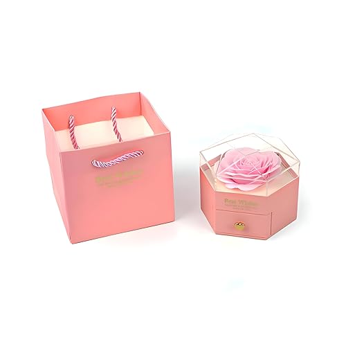 Generic - هدية عيد الحب - صندوق مجوهرات سداسي صلب مع ترتيب زهور محفوظة، محمول، مثالي للاحتفالات الخاصة وتخزين التذاكر (بينك)