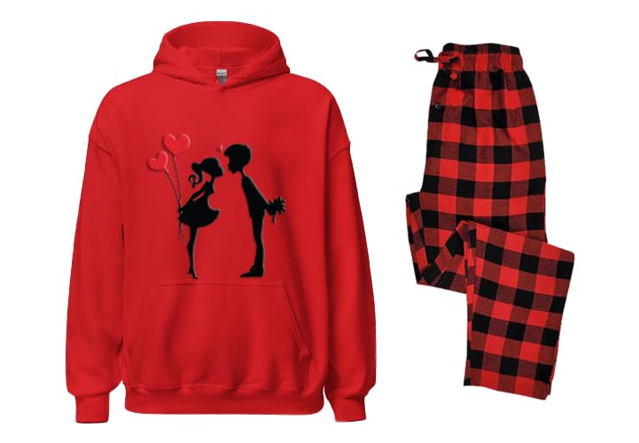 Generic - طقم بيجامة لعيد الحب، سويت شيرت ذو غطاء رأس أحمر مع بنطلون منقوش برسمة لزوجين، مقاس 2 اكس لارج، 2/ العبوة