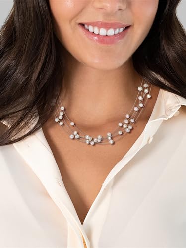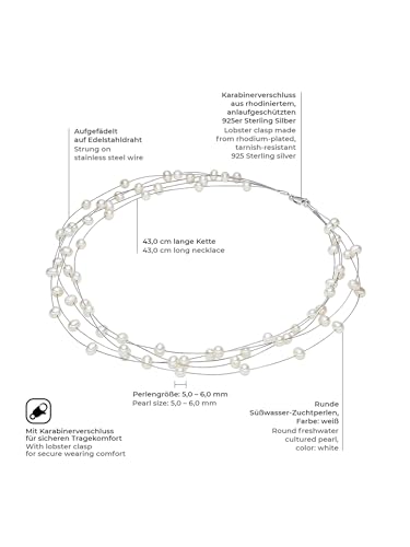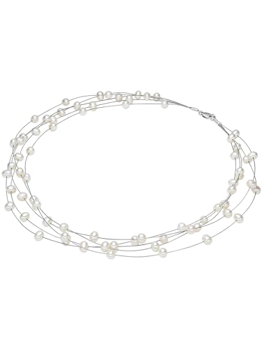Valero Pearls - قلادة حريمي من الفضة الستيرلنج عيار 925 مطلية بالروديوم مع لؤلؤ المياه العذبة الابيض 00400310 فاليرو بيرلز فضي لؤلؤي