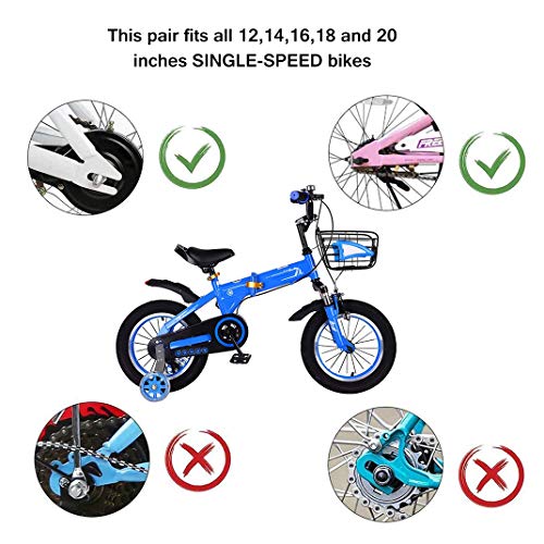 - 【أكثر متانة】مناسب لدراجات الأطفال مقاس 12 انش/ 14 انش/ 16 انش/ 18 انش/ 20 انش، قطر العجلات: 4.33 انش. نصائح: للدراجات أحادية السرعة فقط (لا يمكن تركيبها على الدراجات ذات المسمارات) وتدعم راكبي الدراجات التي يصل وزنها إلى 100 باوند.