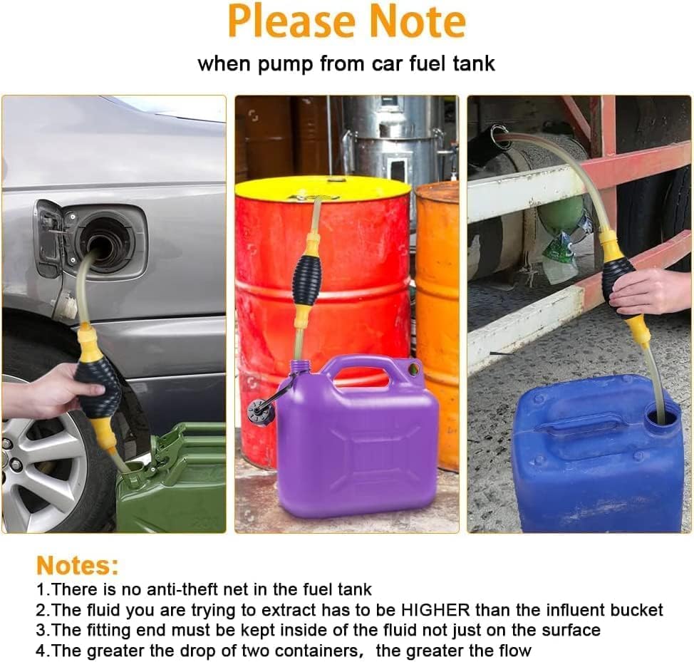 - ♦Multipurpose Utility Tool: Ideal for siphoning fuel from cars, bikes, lawn mowers, transferring water for gardening, draining fish tanks, or emptying containers around the house.