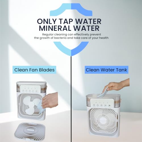 - 🔇【تصميم هادئ وقابل للحمل】 - بفضل تشغيله الهادئ للغاية وتصميمه خفيف الوزن، فإن مبرد الهواء هذا مثالي لغرف النوم أو المكاتب أو السفر. من السهل تحريكها وتضمن نومًا بدون إزعاج طوال الليل.