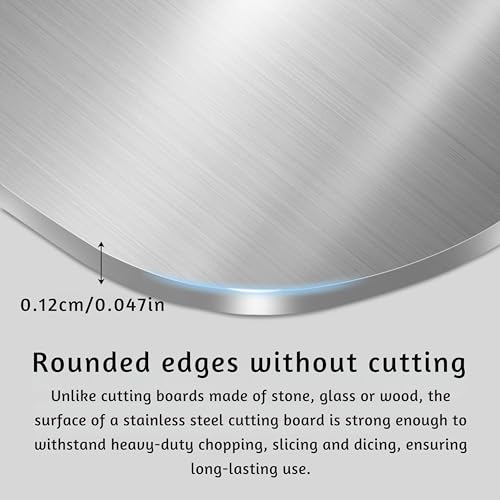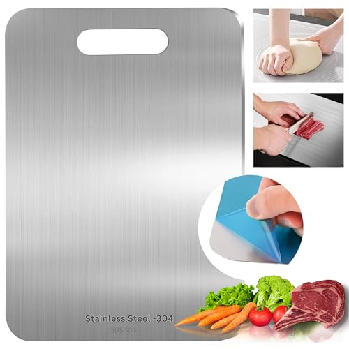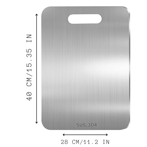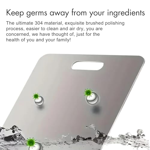 - سطح متين وصحي من الفولاذ المقاوم للصدأ: مصنوع من الفولاذ المقاوم للصدأ 304 الممتاز الآمن غذائيًا، يقاوم لوح التقطيع هذا الصدأ والخدوش والبقع، مما يوفر سطحًا غير مسامي وخالي من البكتيريا للحوم والخضروات وأكثر من ذلك.
