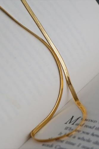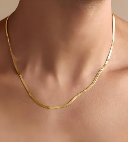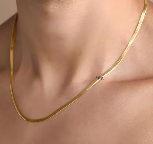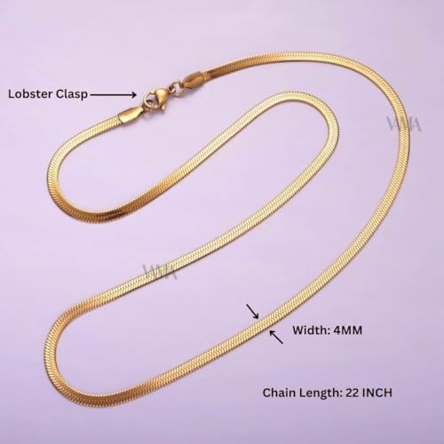 VAMA - سلسلة كلاسيكية بسيطة ذهبية من الفولاذ المقاوم للصدأ من فاما، سلسلة بنمط جلد الثعبان على الطراز الغربي، سلسلة مسطحة أنيقة بنمط متعرج للرجال والأولاد