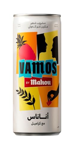 Vamos - مشروب شعير غازي غير كحولي من فاموس، طعم أناناس مع كراميل، سعة 300 مل