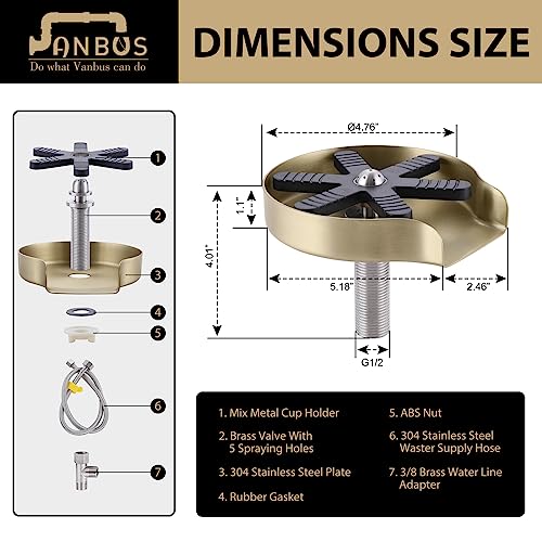 Vanbus - شطّاف أكواب لحوض المطبخ – من اكسسوارات الأحواض العصرية وغسّالة أكواب وزجاجات معدنية من فولاذ مقاوم للصدأ، مثالية للمطابخ والمقاهي وأحواض البار