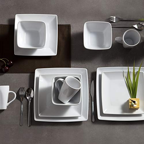 - نمط معاصر: التصميم المربع مع لمسة نهائية بيضاء أنيقة هو إضافة جميلة لأدوات المائدة الموجودة ومفارش الطاولة والديكور المحيط. أدوات المائدة سهلة التنظيف وآمنة للفرن والفريزر وغسالة الأطباق والميكروويف.
