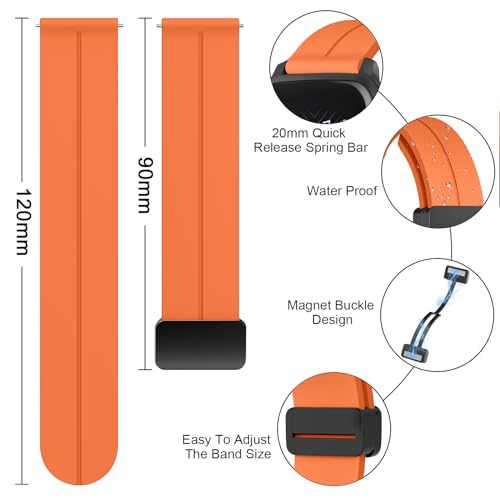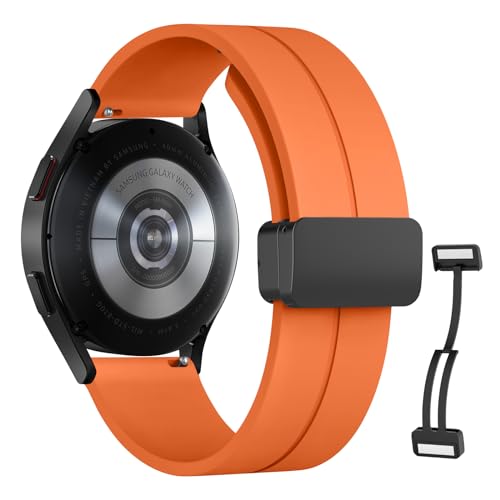 Vancle - سوار سيليكون بمشبك مغناطيسي قابل للطي لساعة سامسونج جالاكسي 6 - 5 - 4 44 - 40 ملم ووتش برو 45 كلاسيك 47 - 43 اساور سريعة الفك للنساء والرجال برتقالي من فانكل