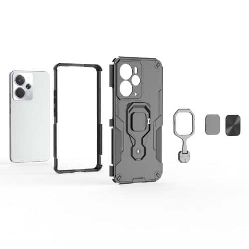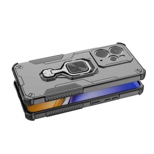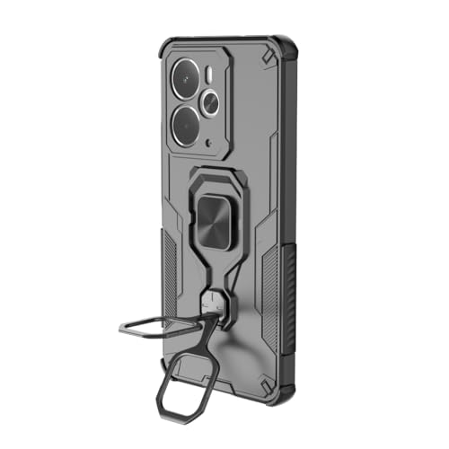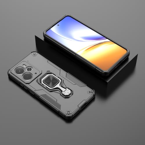 Generic - جراب حماية ارمور فائق المتانة بحماية قوية مع حامل حلقي مغناطيسي ومسند قابل للطي لموبايل ريلمي 14 شبكة الجيل الخامس 5G، أسود