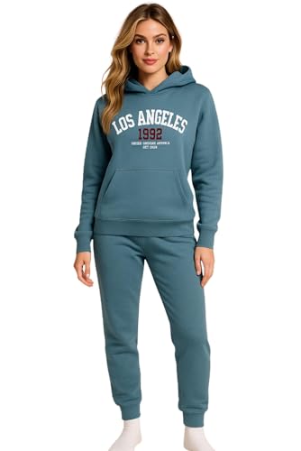 VNL by Vanilla - طقم بدلة رياضية كاجوال للنساء، هودي وبنطلون رياضي من مزيج القطن بلون أزرق مخضر، كود 3426 من فانيلا