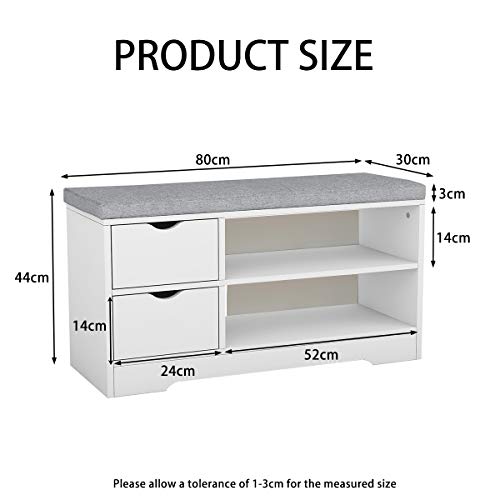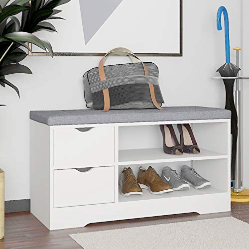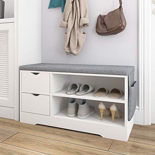 Vanimeu - فانيمو رف خشبي لتخزين الاحذية مع وسادة مقعد ودرجين (ابيض)