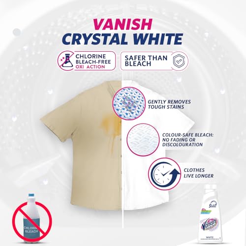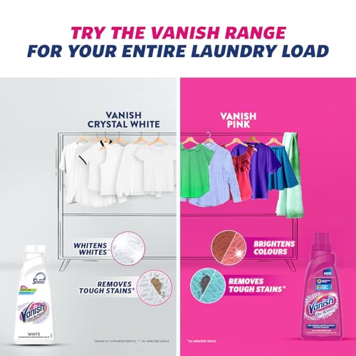 Vanish - مزيل بقع سائل من فانيش، 800 مل، سائل إضافي أبيض | مزيل بقع للملابس | خالٍ من الكلور والمبيضات | مناسب لجميع منظفات الغسيل السائلة والبودرة