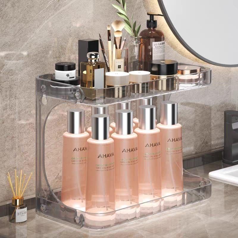 - صُنع من الأكريليك الشفاف عالي الجودة، ليضيف لمسةً أنيقةً لطاولة المكياج أو الحمام، مع الحفاظ على عرض كل شيء بشكل مرتب.