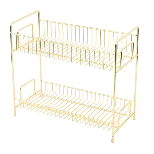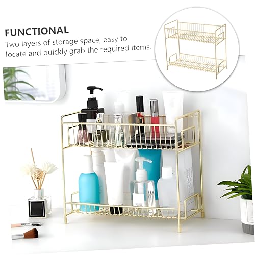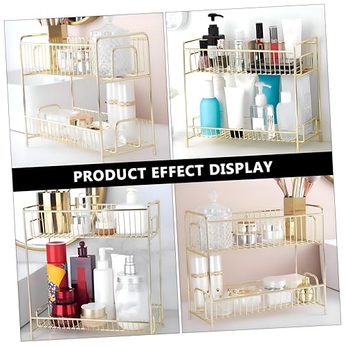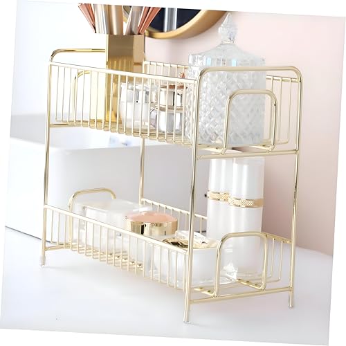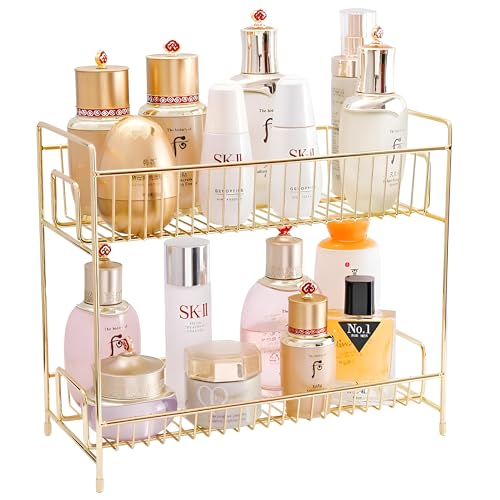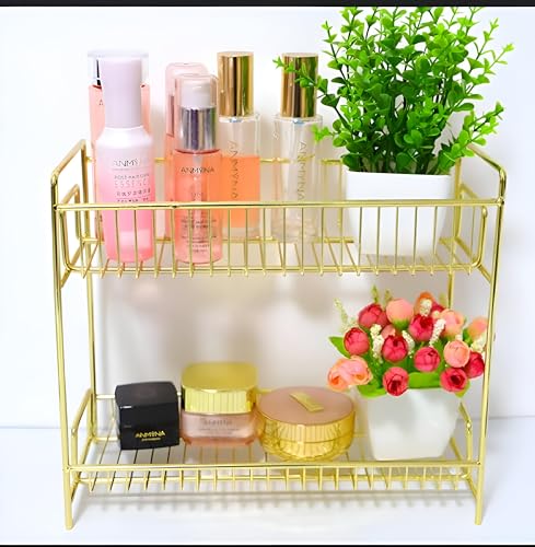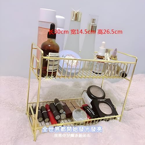 Generic - منظم فانيتي - حامل مكياج ومستحضرات تجميل أنيق ذهبي معدني مزدوج المستوى للمكتب أو غرفة النوم، حل تخزين متطور وعملي