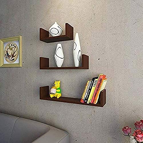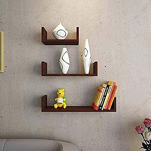 VANIYA CRAFTS - رفوف حائط عائمة على شكل حرف U لغرفة المعيشة والمطبخ والكتب وديكور المنزل والمكتب من فانيا كرافتس®، بني