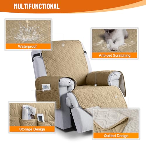 VANSOFY - غطاء كرسي هزاز مقاوم للماء 100%، غطاء كرسي للحماية من الكلب غير قابل للانزلاق، غطاء واقي للأثاث قابل للغسل مع جيب، أشرطة مرنة للحيوانات الأليفة والكلاب من فانسوفي (ساند، 60 سم)