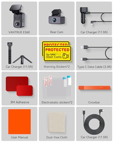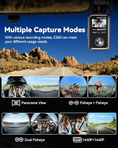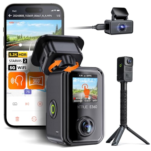 VANTRUE - كاميرا لوحة القيادة E360 ايس 5.2K بانورامية 360 درجة، كاميرا محمولة، ستارفيس 2، HDR، كاميرا أمامية وخلفية داخلية، تحكم صوتي/لمس، نظام تحديد المواقع، وضع وقوف مؤقت 24/7، تدعم 512GB كحد أقصى من فانتشر