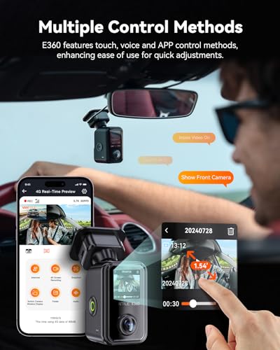 - [ تحكم ذكي في الصوت واللمس] يمكن التحكم في كاميرا السيارة E360 بسهولة عن طريق الأوامر الصوتية بلغات متعددة (الإنجليزية والروسية والصينية والفرنسية واليابانية)، مما يسمح لك بحفظ الفيديو والتقاط الصور وبدء الفيديو وتشغيل/إيقاف تشغيل الواي فاي وتشغيل/إيقاف تشغيل الشاشة دون تشتيت الانتباه عن القيادة. شاشة لمس IPS مقاس 1.54 انش مع واجهة تشغيل بديهية تجعل من السهل الوصول إلى القائمة المختصرة / القائمة الرئيسية وتبديل مشاهدات الكاميرا بتمريرة بسيطة. أبسط وأكثر ذكاءً.