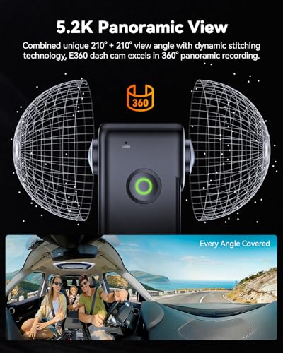 - [ رؤية بانورامية ثورية 5.2K 360 درجة + رؤية خلفية 2.7K ] توفر الكاميرات الأمامية والداخلية E360 مع مستشعر IMX675 مزدوج وزاوية رؤية 210 درجة +210 درجة صورًا بانورامية 5.2K 360 درجة تغطي جميع التفاصيل حول السيارة بناءً على تقنية الخياطة الديناميكية الفريدة للصور. مدمج مع كاميرا خلفية 2.5K، يوفر E360 ACE حماية شاملة للسيارة بدون نقطة عمياء. تضمن أحدث وحدة معالجة مركزية رباعية النواة تسجيلات سلسة وخالية من التشويش، مما يعزز الأمان عند القيادة ووقوف السيارات.