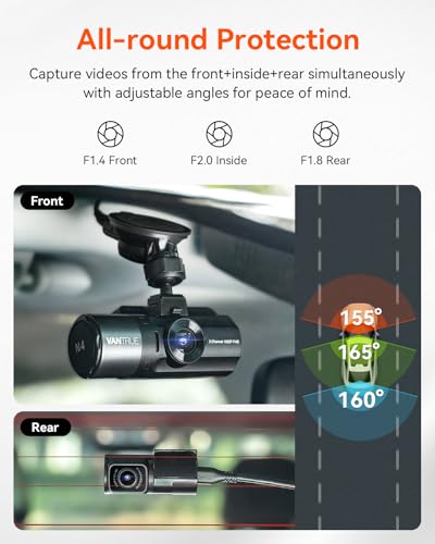 VANTRUE - كاميرا تابلوه N4 3 قنوات، بكاميرا أمامية وخلفية 4K+1080P وكاميرا أمامية وداخلية 1440P+1440P، كاميرا ثلاثية 2K+2K+1080P، بخاصية رؤية ليلية بالأشعة تحت الحمراء ووضع وقوف 24 ساعة وذاكرة 256GB من فانترو