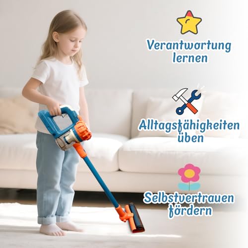 VARANO - فارانو لعبة مكنسة كهربائية للاطفال، مكنسة كهربائية للاطفال مع وظيفة حقيقية، لعبة مكنسة كهربائية من 3 سنوات، مكنسة كهربائية واقعية للاطفال، العاب منزلية للاولاد والبنات