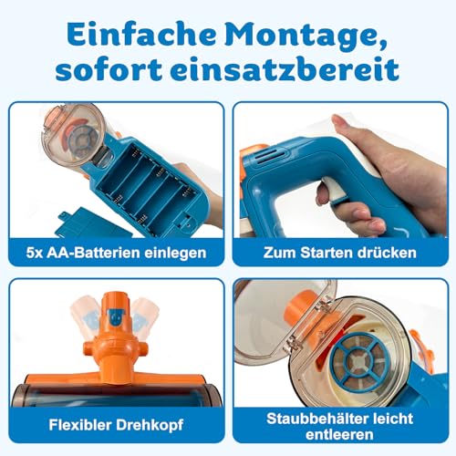 - متعة واقعية مع أصوات شفط حقيقية. تحاكي لعبة المكنسة الكهربائية للأطفال أصوات الشفط الحقيقية - مكنسة كهربائية للأطفال ذات وظيفة حقيقية (مكنسة كهربائية للأطفال تعمل حقًا) تضمن لعب الأدوار الخيالية. مثالي للاستخدام بدون شاشات في المنزل.