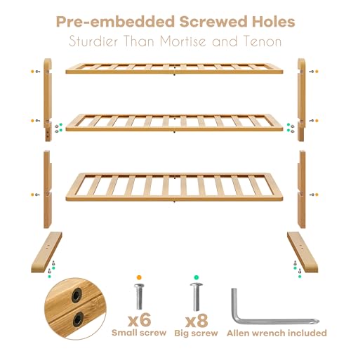 - تجميع سريع لمدة 10 دقائق مع الأجهزة المتضمنة - منظم رف الأحذية المصنوع من الخيزران هذا مؤمن بفتحات ومسامير مدمجة مسبقًا، مما يضمن ثباتًا أكبر مقارنة بالنقر وبنية اللسان.