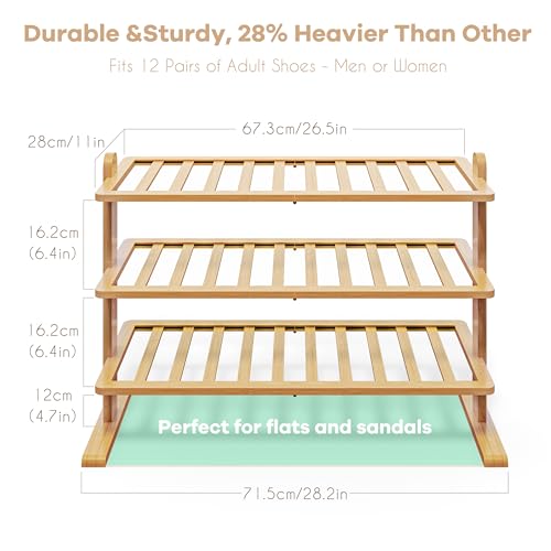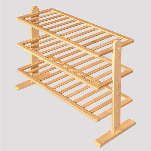 Varhomax - رف أحذية من الخيزران فارهوماكس للمدخل والخزانة، منظم رف أحذية خيزراني من 3 طبقات قائم بذاته للمساحات الصغيرة، متعدد الوظائف لغرفة النوم والحمام والجراج والممر