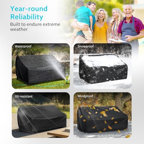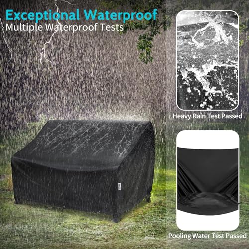 VARIETYFACE - أغطية أثاث الباحة مقاومة للمياه، أغطية كرسي الحب للباحة مقاومة للشمس، أغطية أثاث الحديقة متينة من فاريتي فيس، تناسب حتى 1.32 م عرض × 81.28 سم عمق × 86.36 سم ارتفاع، أسود