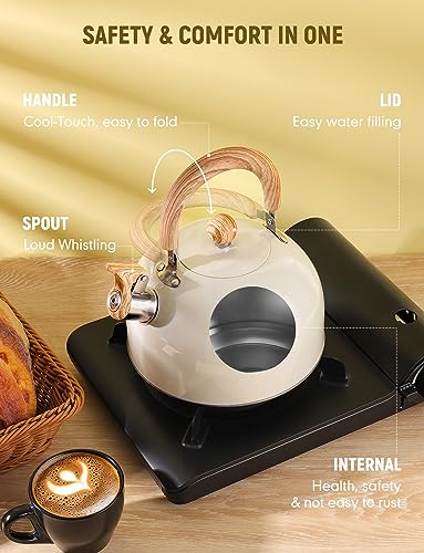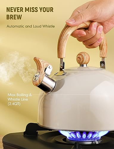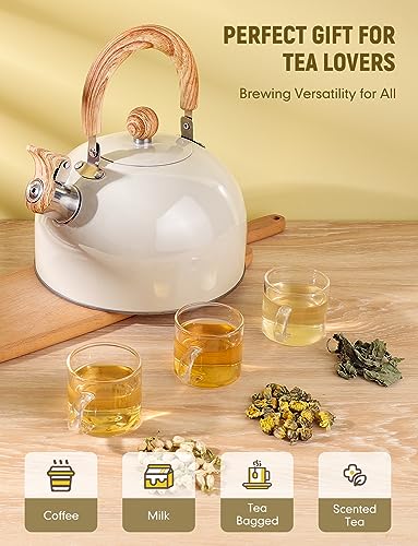VARLEAS - غلاية شاي بصوت صافرة مسموعة للموقد من فارلياس، غلاية شاي من الفولاذ المقاوم للصدأ بدرجة جراحية مع مقبض مريح يحافظ على البرودة، إبريق شاي سريع الغليان بسعة 2.5 لتر للمطبخ المنزلي - لون وايت ميلك