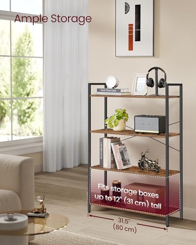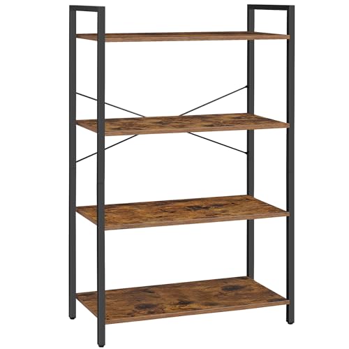 VASAGLE - فاساجيل رف كتب طويل من 4 طبقات، خزانة كتب كبيرة مع اطار ستيل، رف كتب عميق لغرفة المعيشة والمكتب المنزلي والدراسة، 11.8 × 31.5 × 47 انش، نمط صناعي، بني عسلي واسود ULLS140K01