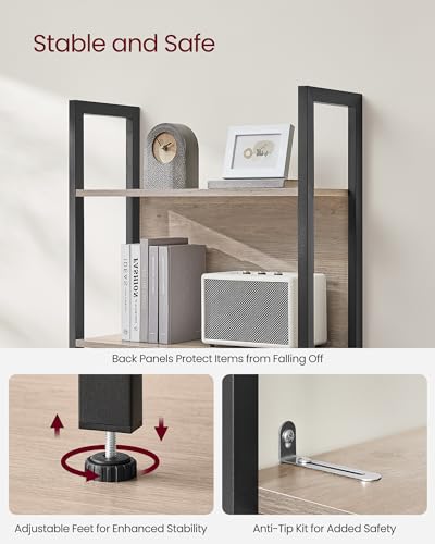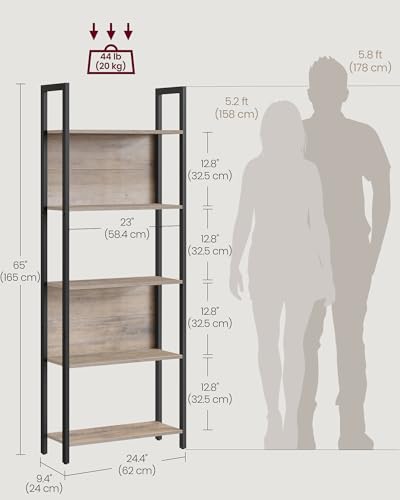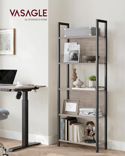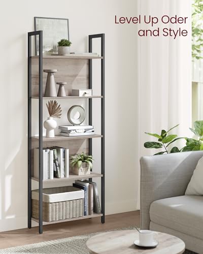 VASAGLE - رف كتب مكون من 5 طبقات من فاساجيل، رف تخزين، مكتبة مع إطار من الفولاذ لغرفة المعيشة والمدخل والطرقة والمكتب، لون رمادي