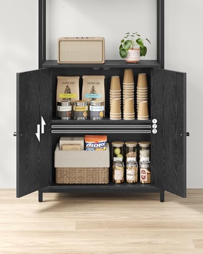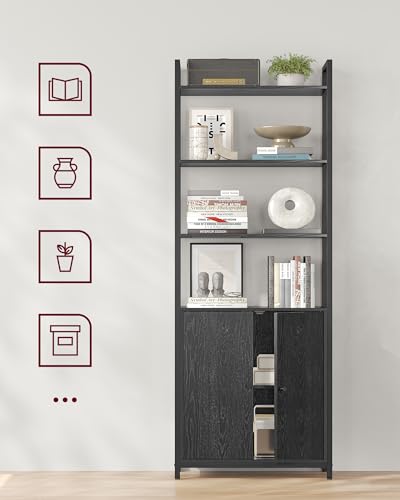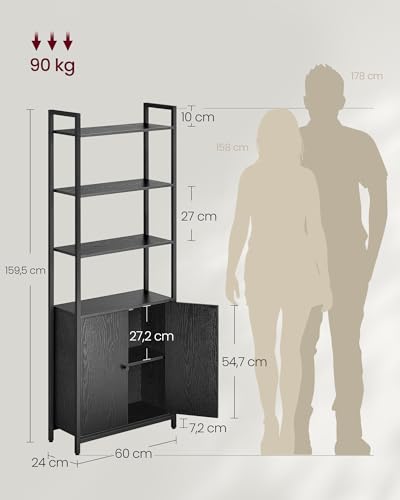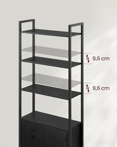 VASAGLE - فاساجيل خزانة كتب من 6 طبقات، رف قائم مع ابواب، اطار معدني، ارفف قابلة للتعديل، 24 × 60 × 159.5 سم، لغرفة المعيشة، غرفة النوم، اسود داكن LLS133B01