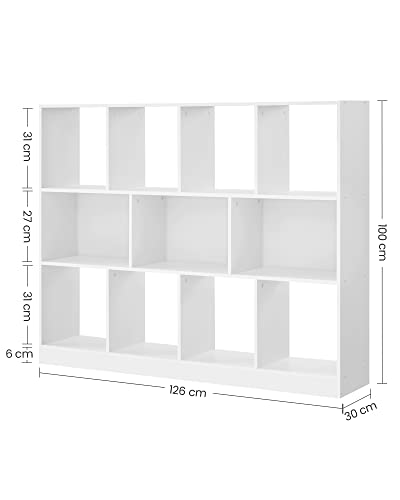 VASAGLE - رف كتب مقسم مع 11 مساحة تخزين للدراسة وغرفة النوم وغرفة المعيشة، لون أبيض من فاساجيل LBC054T14