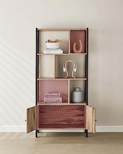 VASAGLE - رف لتخزين الكتب بتصميم صناعي وهيكل من الصلب، دولاب كتب كبير مع أبواب و4 رفوف لغرفة المعيشة والمكتب LBC022B50 من فاساجيل، لون خشب البلوط المحمص والأسود