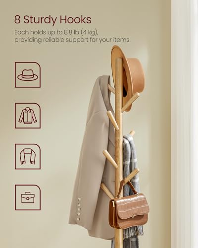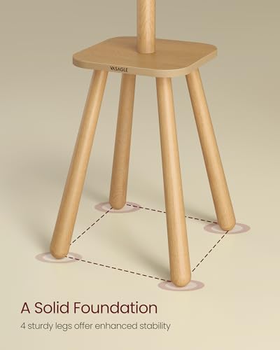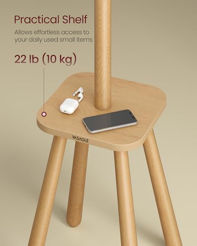 VASAGLE - فاساجيل حامل معاطف قائم بذاته مع 8 خطافات ورف تخزين طول 67.1 انش للمعاطف والقبعات والشنط للمدخل والرواق وغرفة النوم بيج طبيعي URCR033N01