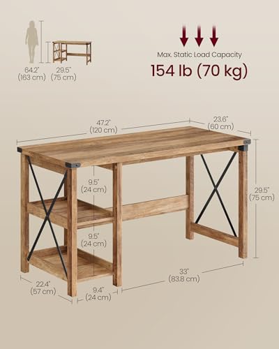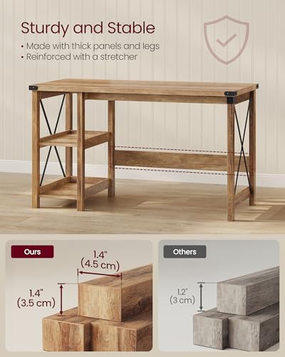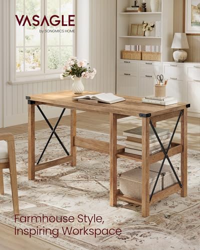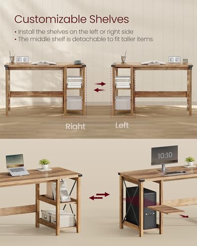 VASAGLE - فاساجيل مكتب كمبيوتر، مكتب منزلي مع ارفف تخزين على اليمين او اليسار، بيت المزرعة، للعمل والدراسة والالعاب والكتابة، 23.6 × 47.2 × 29.5 انش، بني عسلي ULWDAM090T41