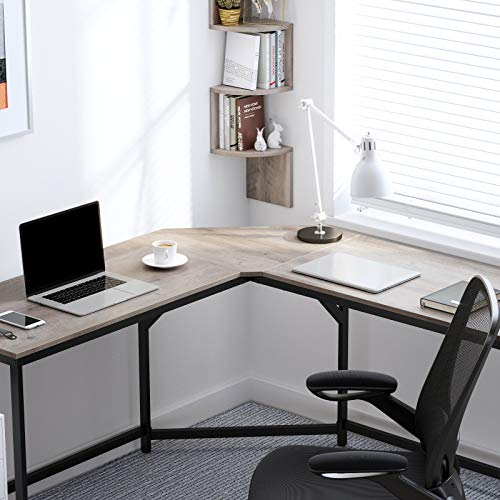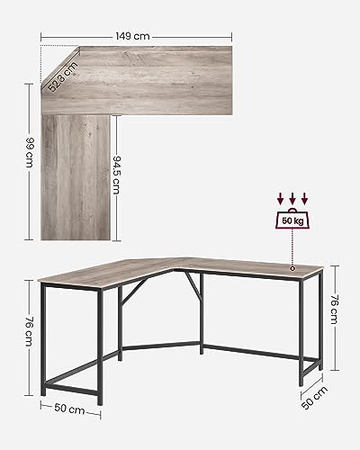 VASAGLE - مكتب زاوية على شكل حرف L، مكتب للدراسة، المكتب المنزلي، الألعاب، موفر للمساحة، سهل التجميع، تصميم صناعي، رمادي وأسود، موديل LWD073B02 من فاساجيل