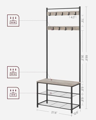 VASAGLE - فاساجيل رف معطف للمدخل مع مقعد للاحذية منظم احذية شجرة قاعة عملية 3 في 1 رمادي واسود UHSR41MB خشب مُصنع سبيكة صلب