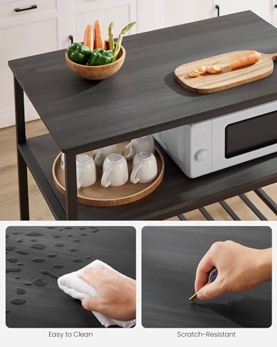 VASAGLE - حامل للمطبخ مع 3 أرفف طراز UKKI005B42، رف مطبخ مع سطح عمل كبير بعرض 1 م، هيكل فولاذي متين، تصميم صناعي، سهلة التركيب من فاساجيل، باللون الأسود وخشب البلوط