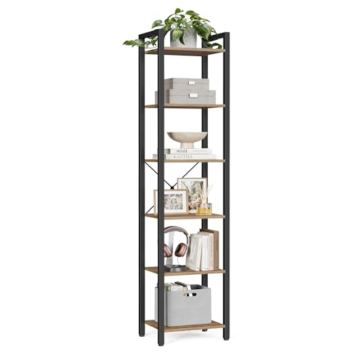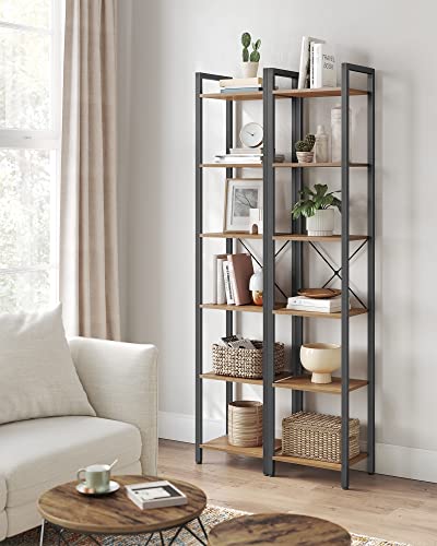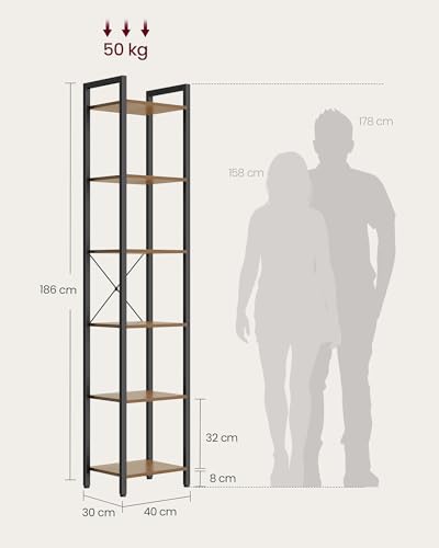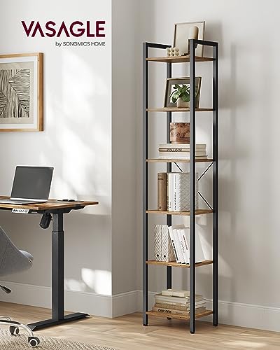 VASAGLE - وحدة تخزين مكتبة بـ6 طبقات LLS101B48 من فاساجل للمكتب وغرفة المعيشة وغرفة النوم، 30 × 40 × 187 سم، نمط صناعي، بندقي داكن وأسود، فولاذ