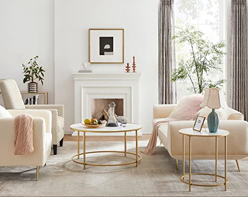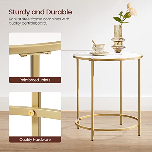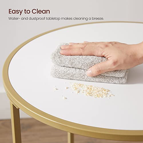 VASAGLE - فاساجيل طاولة جانبية مستديرة بسطح خشبي واطار ستيل ذهبي بجانب السرير سهلة التجميع لغرفة المعيشة غرفة النوم طراز عصري وابيض ULET282A10 خشب معدن